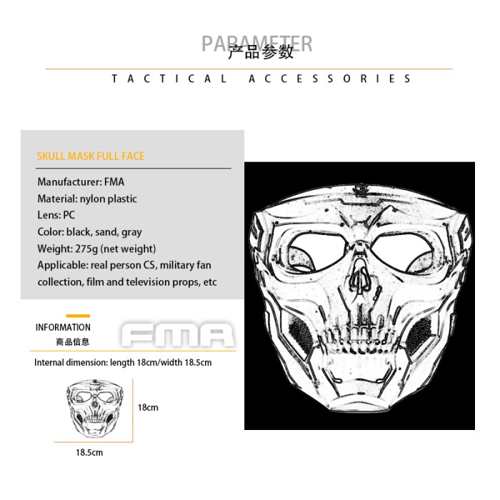 FMA Full Face Skull Mask Topeng Airsoft Original
